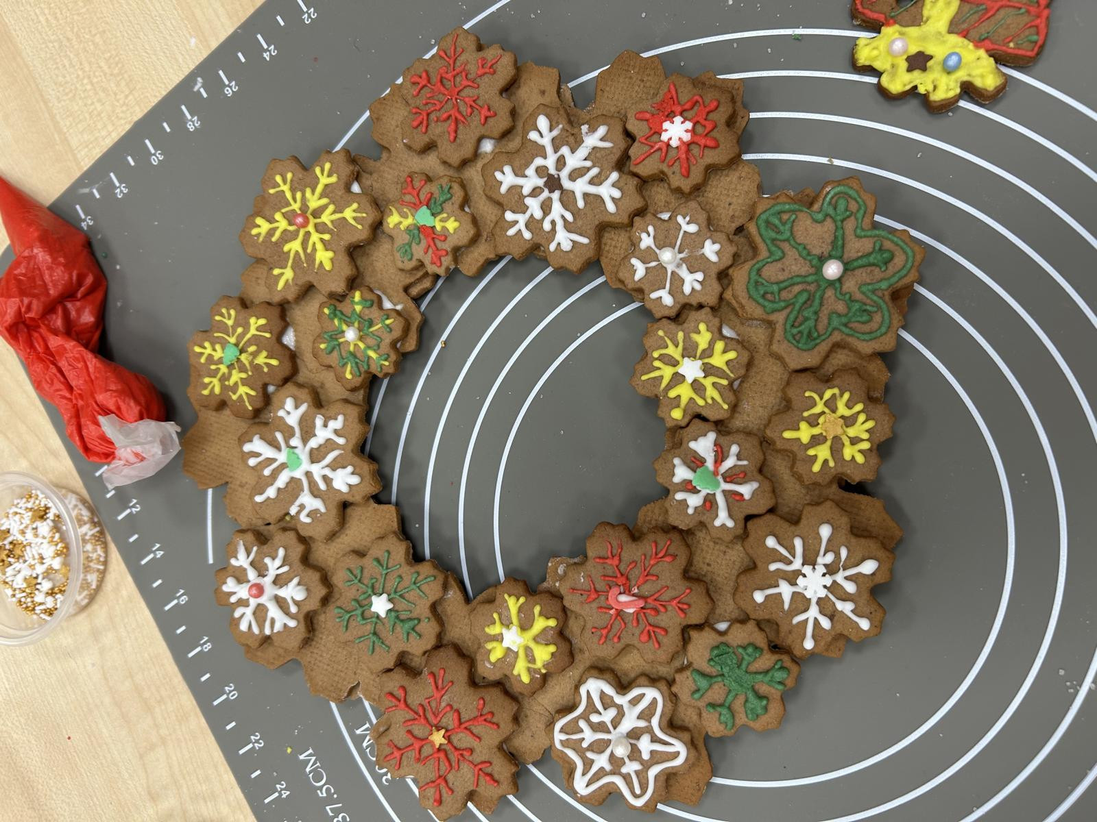 W programie było zdobienie piernikowych mini domków 3D, wieńca piernikowego na drzwi oraz tradycyjnych świątecznych pierniczków.
