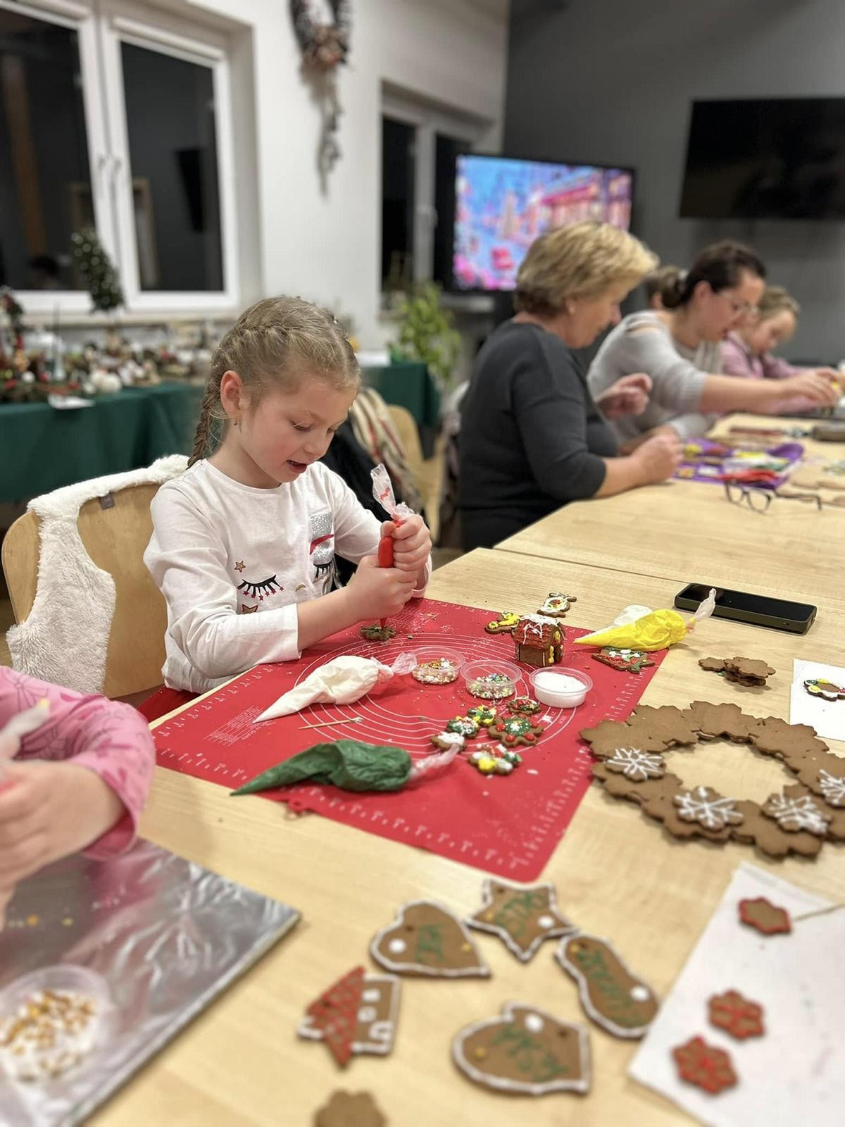 Warsztaty przebiegały w miłej i rodzinnej atmosferze i były okazją do nauki nowych umiejętności. Powstały prawdziwe piernikowe arcydzieła.