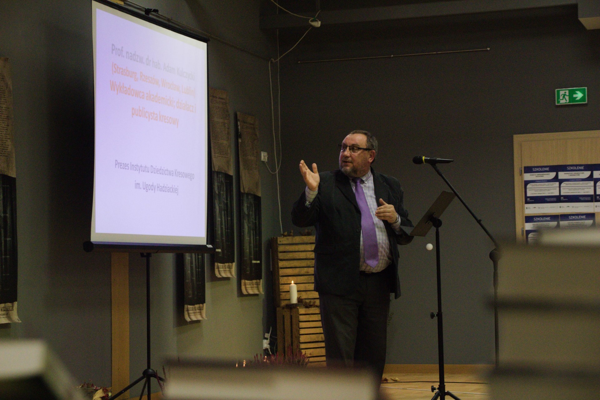 20 października 2022 r. w siedzibie Ośrodka Kultury w Czudcu odbyła się prelekcja pt. „Wołyń’43: Walka o pamięć – walka Polskę”, dotycząca masowego ludobójstwa Polaków dokonanego przez OUN-UPA na Wołyniu i w Galicji Wschodniej w latach 1943-47. Wykład poprowadził prof. nadzw. dr hab. Adam Kulczycki, wykładowca akademicki, działacz i publicysta kresowy, prezes Instytutu Dziedzictwa Kresowego im. Ugody Hadziackiej, który przybliżył obecnym temat rzezi wołyńskiej. Niezaprzeczalnie jest to temat, który budzi wiele silnych emocji, ciężko bowiem zrozumieć okrucieństwo z jakim wymordowano setki tysięcy Polaków - bezbronnych dzieci, kobiet, starców. I mimo, iż minęło ponad siedemdziesiąt lat od tych strasznych wydarzeń, to czy można zapomnieć o bolesnej przeszłości, która wciąż i wciąż otwiera niezbliźnione rany? "Nie o zemstę, ale o pamięć wołają ofiary", dlatego ważne jest by pamiętać, poszerzać wiedzę na ten temat, ale przede wszystkim nie pozwolić zatracić prawdy o tych tragicznych wydarzeniach.