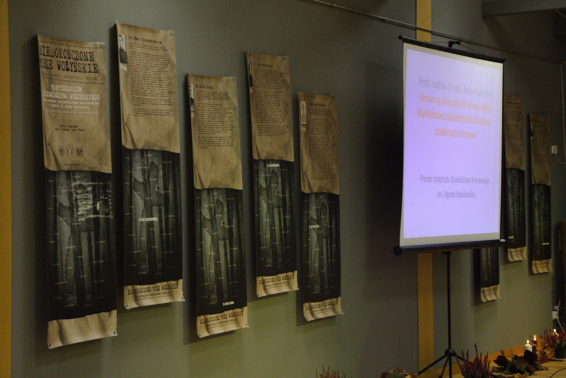 Wykładowi towarzyszyła wystawa „Niedokończone Msze Wołyńskie. Martyrologium duchowieństwa wołyńskiego – ofiar zbrodni nacjonalistów ukraińskich w czasie II wojny światowej”, która opowiada o tragicznym wycinku historii narodu polskiego, okrutnych i dramatycznych wydarzeniach, które rozegrały się na Wołyniu w 1943 roku, w tzw. Krwawą Niedzielę, gdy Ukraińska Powstańcza Armia zaatakowała katolickie świątynie. Na wystawie przedstawiono sylwetki osób duchownych, które zginęły w tym tragicznym dniu. Na miejscu można było także zakupić książki o ludobójstwie na Wołyniu autorstwa Marka Koprowskiego.