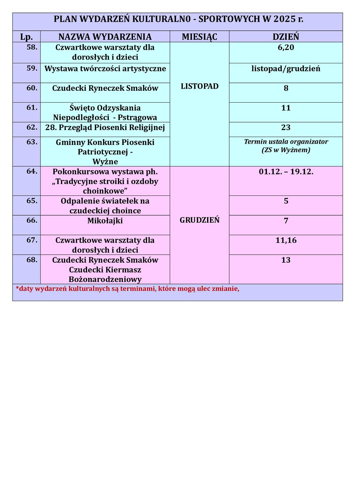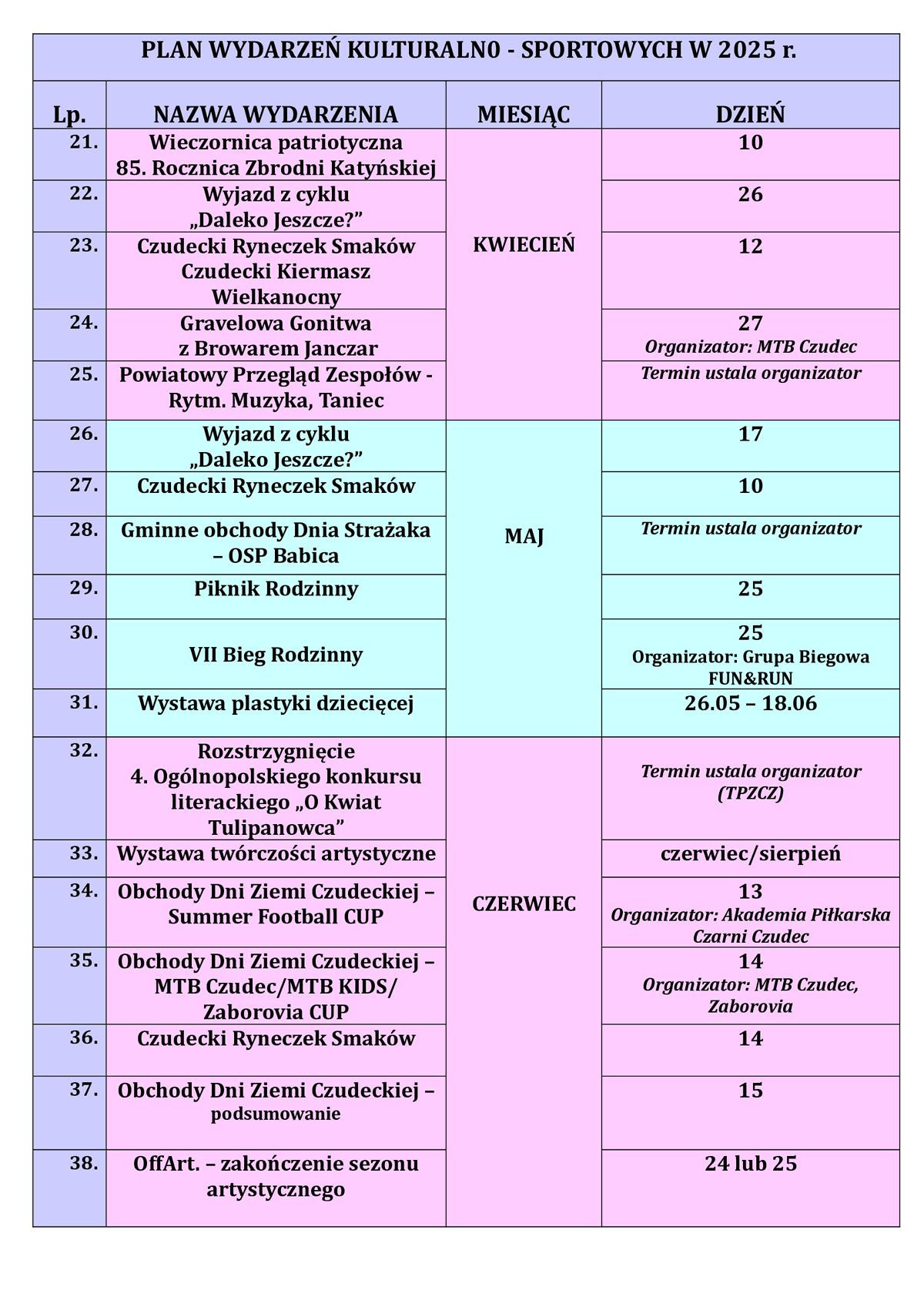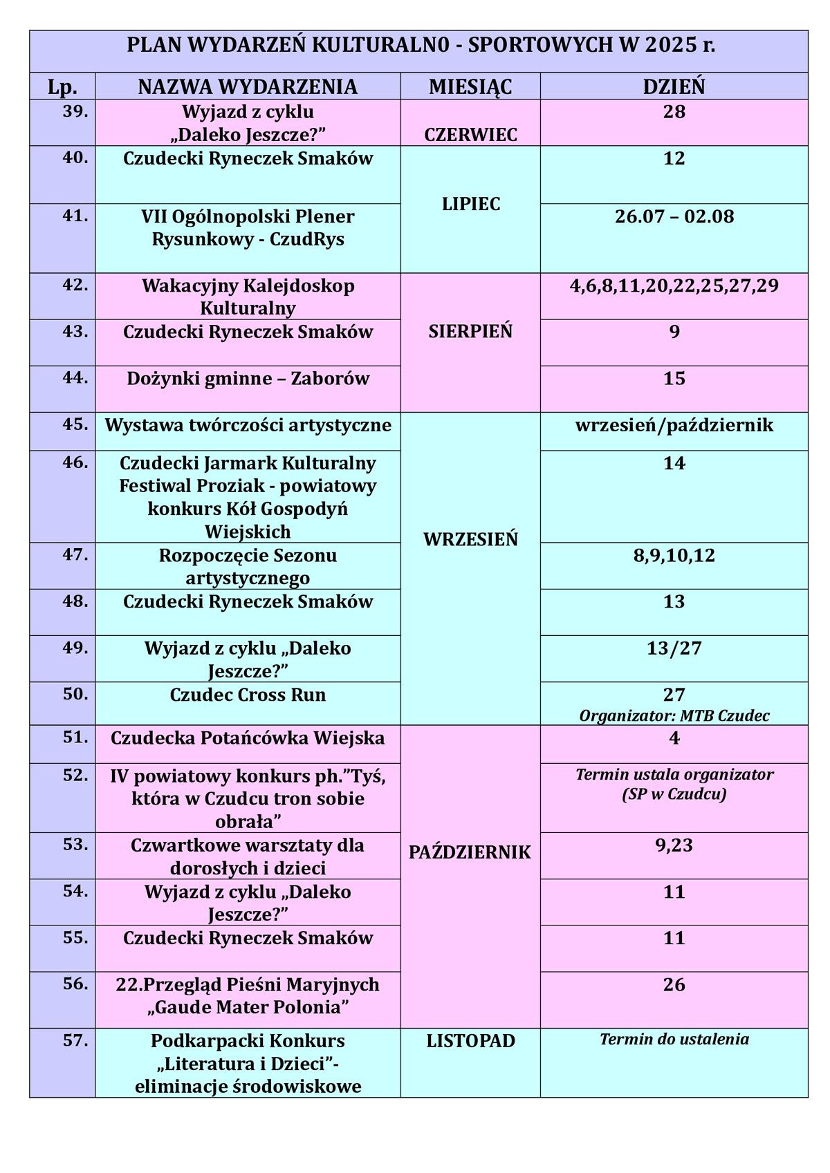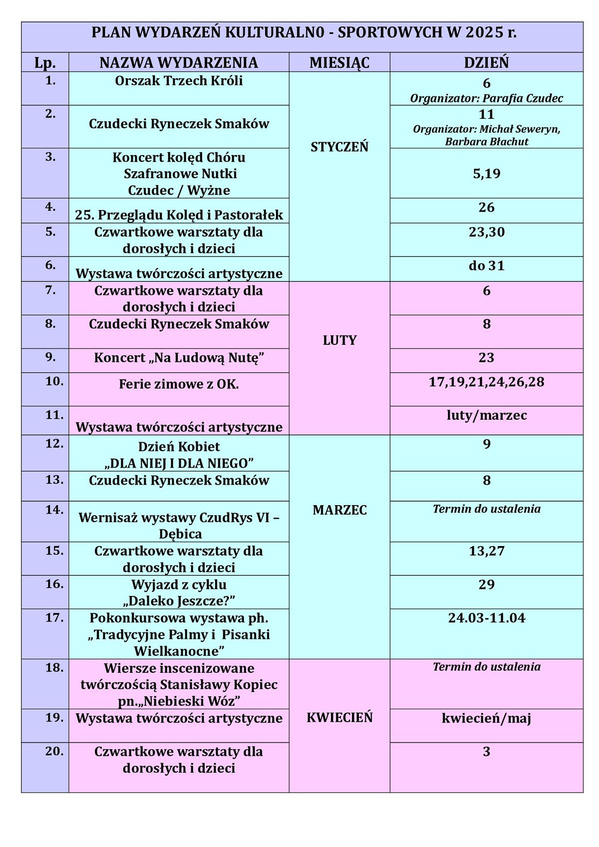 Kalendarz wydarzeń kulturalnych na 2025 rok