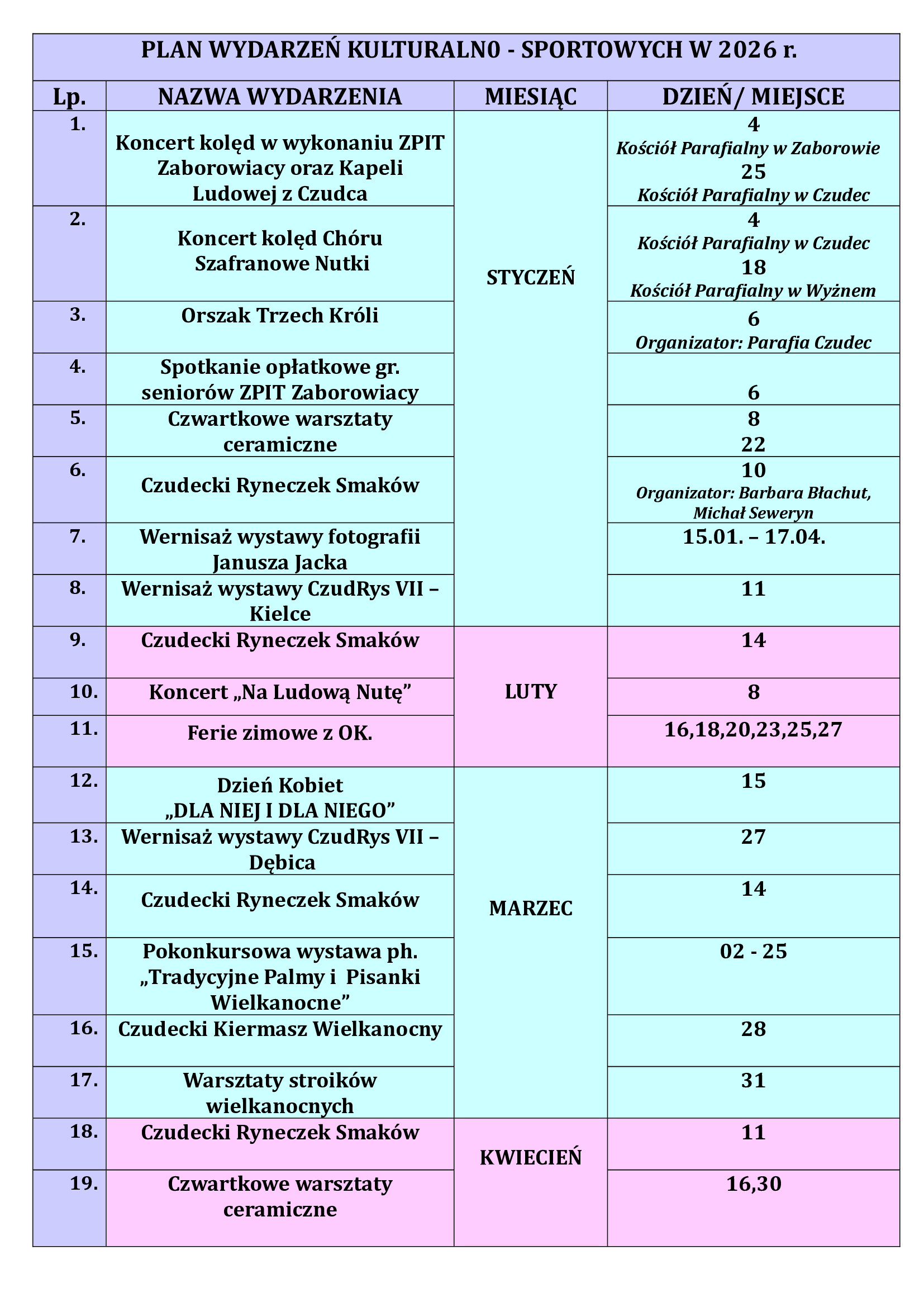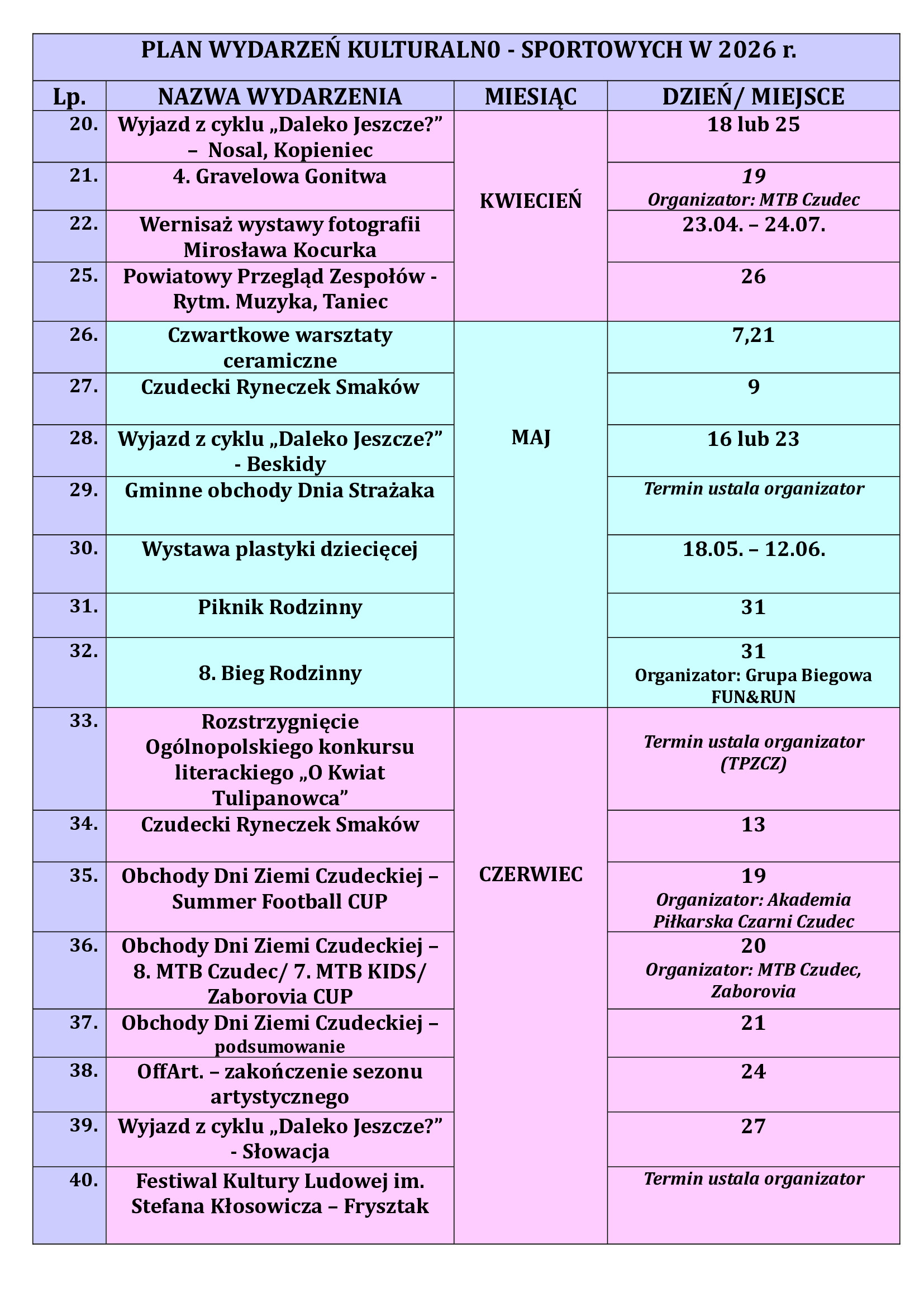 Kalendarz wydarzeń kulturalnych na 2026 rok